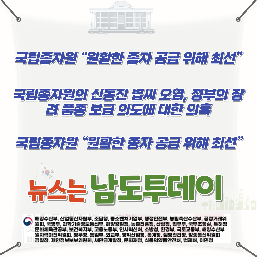 신동진 볍씨의 오염 문제와 관련된 의혹에 대한 철저한 조사가 필요하다는 의견이 제기되는 가운데, 국립종자원은 농업인들에게 고품질의 종자를 공급하기 위한 노력을 이어가고 있습니다. 이 문제의 해결을 위한 국립종자원의 노력과 더불어, 정부의 새로운 장려 품종 보급 의도에 대한 의혹에 대한 철저한 조사가 이루어져야 할 것입니다.