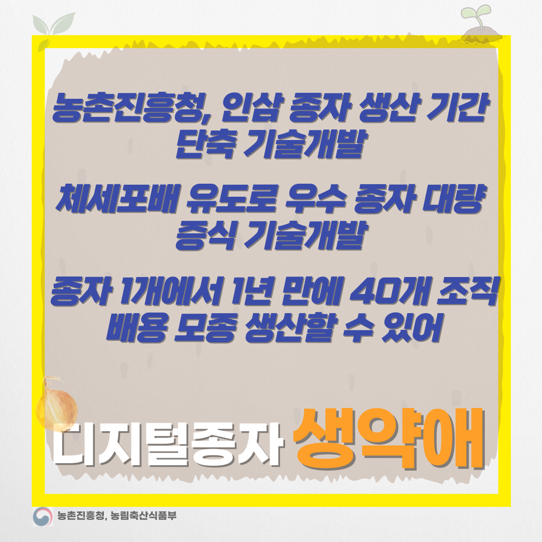 "농촌진흥청, 인삼 종자 대량 생산 기술로 농가에 활력!"